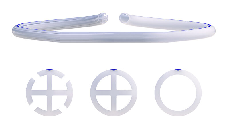 Guill Tool has released its new reciprocating head. The traditional tip and die assembly is replaced with a linear reciprocating assembly that changes the tube’s profile within a given length. This process is repeated throughout a single extrusion run without interruptions. Cutting capability, in association with the extrusion speed, cuts the finished product to length.