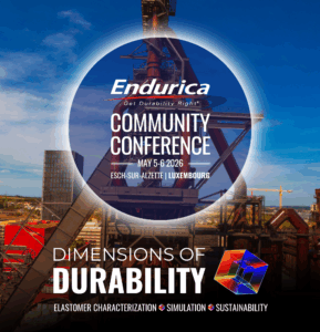 Findlay, OH – Endurica announces its second Community Conference – and its first to be held in Europe! This in-person event, taking place May 5-6, 2026 at the offices of Endurica Europe, S.à r.l. in Esch-sur-Alzette, Luxembourg, has the theme “Dimensions of Durability – Elastomer Characterization, Simulation, Sustainability,” and will bring together OEMs, rubber parts manufacturers, and material suppliers to engage at a high level on all aspects of durability.